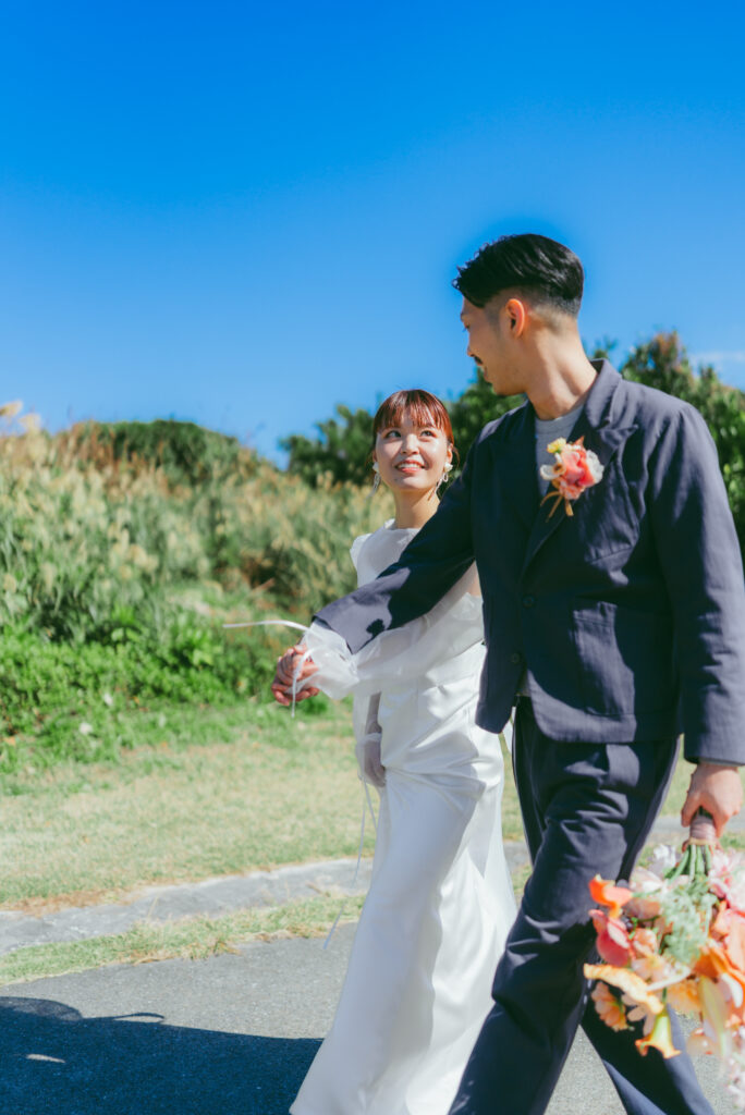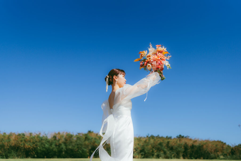 海辺や草原といった開放的なロケーションで、新婦さまのナチュラルな美しさを最大限に引き出してくれるコーディネート。伝統的なウェディングドレスの重厚さではなく、「軽やかさ」と「自分らしさ」を大切にする今のトレンドにぴったりの一着です。この度はありがとうございました!海外やご遠方での挙式・フォトのレンタルにも対応しております。日程などもお気軽にご相談ください。