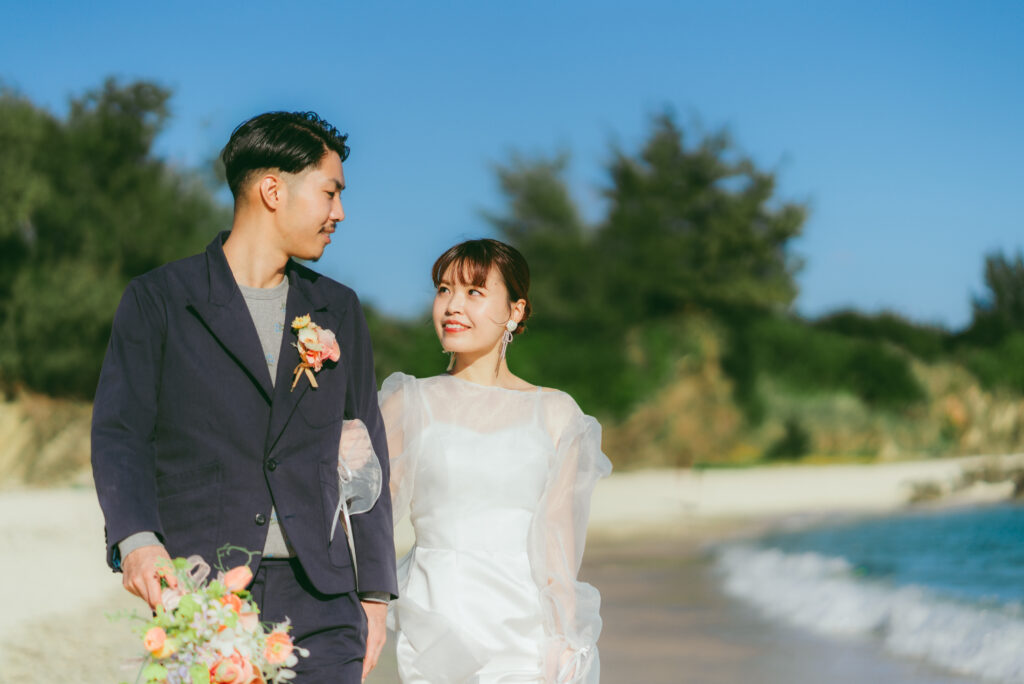沖縄で前撮りの新郎新婦様♡素敵なお写真をシェアしてくださったので、KNOTでお選びいただいたドレスをご紹介します♡